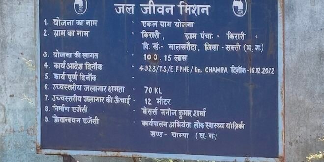 मालखरौदा-सक्ती(एचकेपी 24 न्यूज)।जल जीवन मिशन के तहत् ग्राम सिंघरा मे करीब 02.00 करोड रुपए की लागत से निर्माण किए गए …