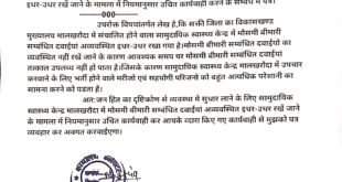 Read More »मालखरौदा:-मौसमी बीमारी(उल्टी,दस्त) के रोकथाम एवं ईलाज हेतु उप स्वास्थ्य केन्द्र सिंघरा के सम्बंधित ग्राम चांटीपाली का ग्राम पंचायत भवन में लगाए गए शिविर में एमबीबीएस चिकित्सक,महिला/पुरुष आरएमए का ड्यूटी लगाने के बजाय सिर्फ आरएचओ,सीएचओ का शिफ्ट वाईज एक पुरुष आरएमए,बीईटीओ एवं सेक्टर पर्यवेक्षक के मार्गदर्शन में कार्य करने खण्ड चिकित्सा अधिकारी के द्वारा जारी किए गए आदेश में आंशिक संशोधन करवाते हुए एमबीबीएस चिकित्सक एवं महिला/पुरुष आरएमए का शिफ्ट वाईज ड्यूटी लगवाने नियमानुसार उचित कार्यवाही करने हिन्देश एजुकेशन हेल्थ एण्ड वेलफेयर फाउण्डेशन (रजिस्टर्ड) के अध्यक्ष सुनिल कुमार बर्मन ने कलेक्टर को लिखा पत्र…
