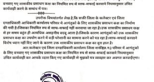 सक्ती:-नियमित आवश्यक साफ-सफाई का अभाव में आगंतुको के लिए कलेक्टोरेट परिसर में बनाए गए शासकीय प्रसाधन कक्ष से आने वाली असहनीय बदबू से प्रसाधन उपयोग करने पहुंचने वाले आगंतुक परेशान.. आगंतुको के लिए कलेक्टोरेट परिसर में बनाए गए शासकीय प्रसाधन कक्ष का नियमित रुप से आवश्यक साफ-सफाई करवाने नियमानुसार उचित कार्यवाही करने हिन्देश एजुकेशन हेल्थ एण्ड वेलफेयर फाउण्डेशन (रजिस्टर्ड) के अध्यक्ष सुनिल कुमार बर्मन ने कलेक्टर को लिखा पत्र…
