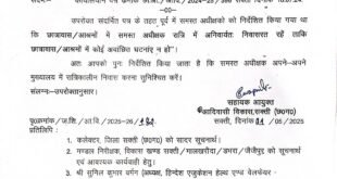 जैजैपुर(एचकेपी 24 न्यूज)।शासकीय अनुसूचित जाति बालक आश्रम हरेठीकला के माह अप्रैल 2025 में अनुपस्थित बच्चो का उपस्थिति दर्ज कर चावल …