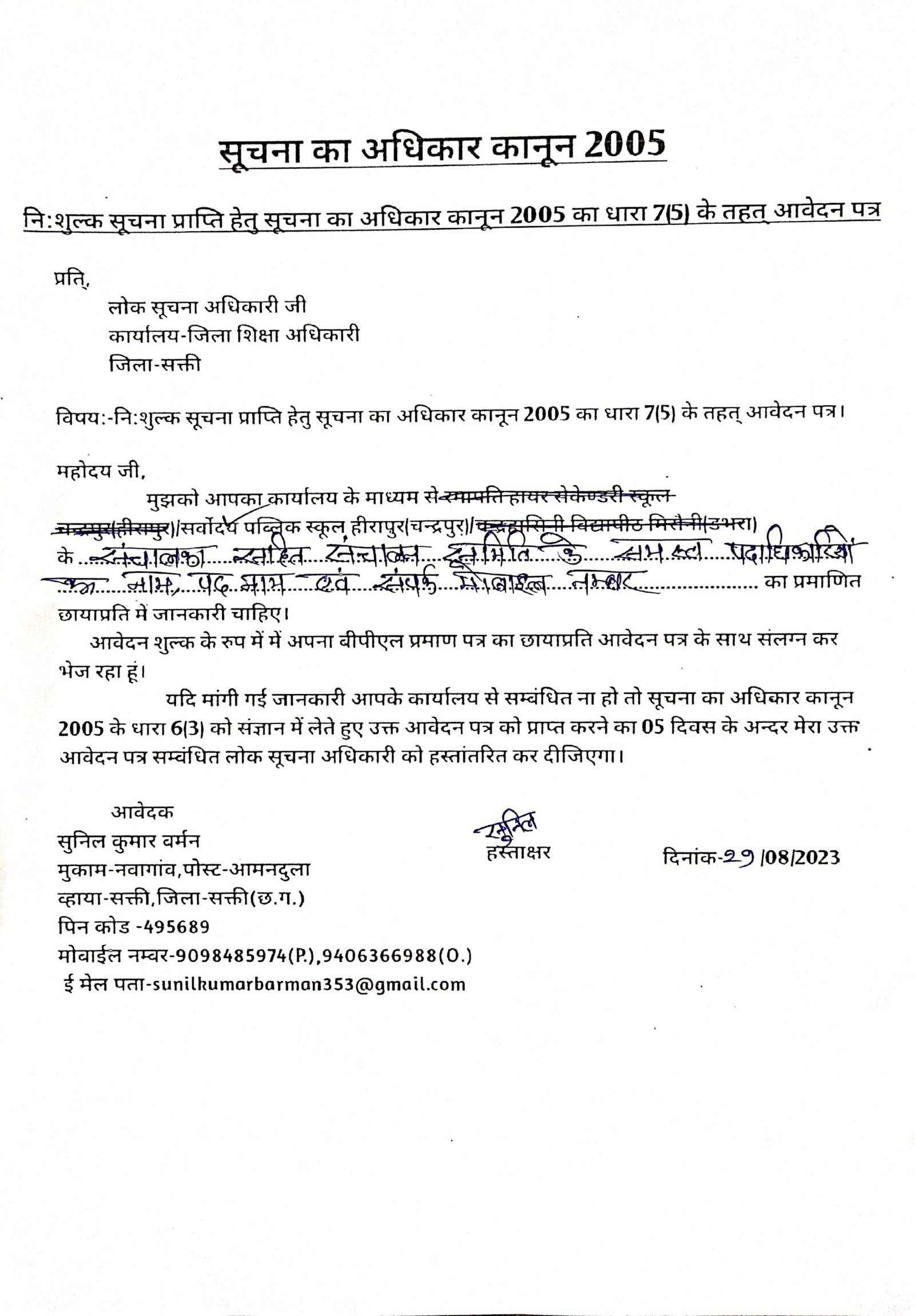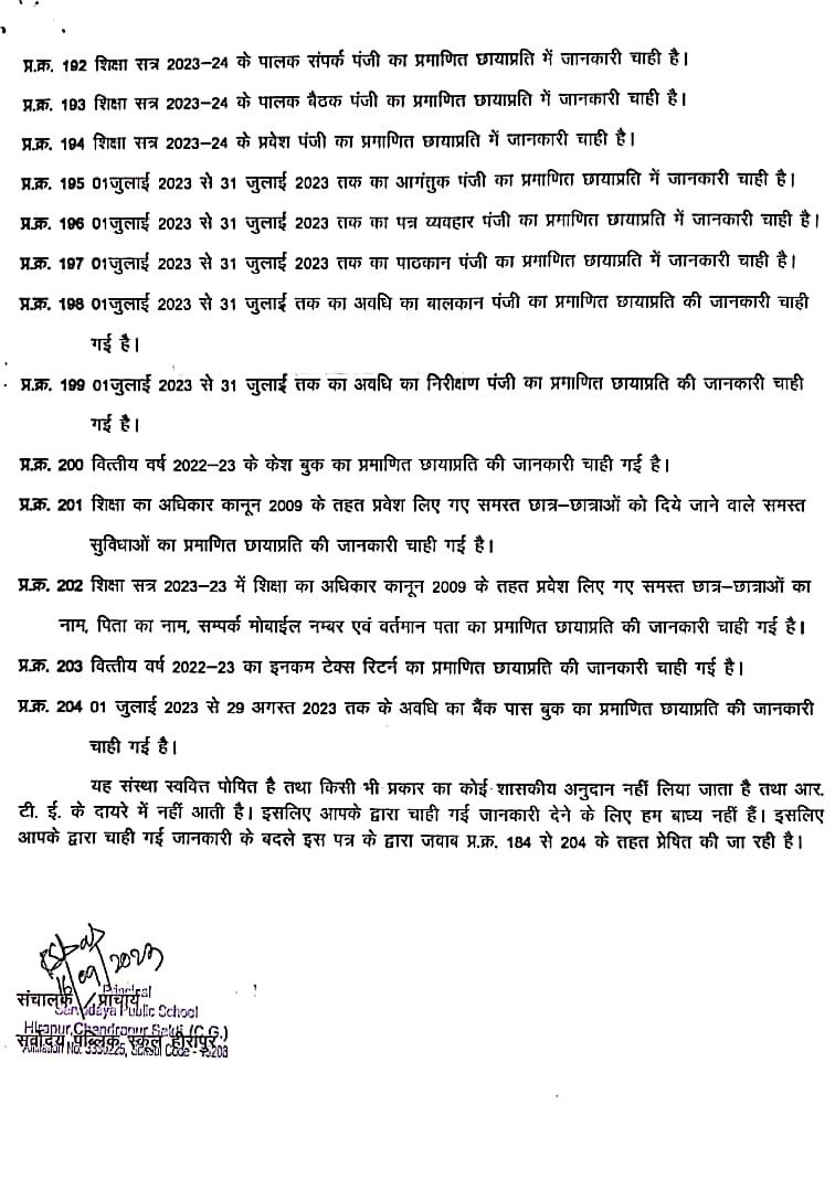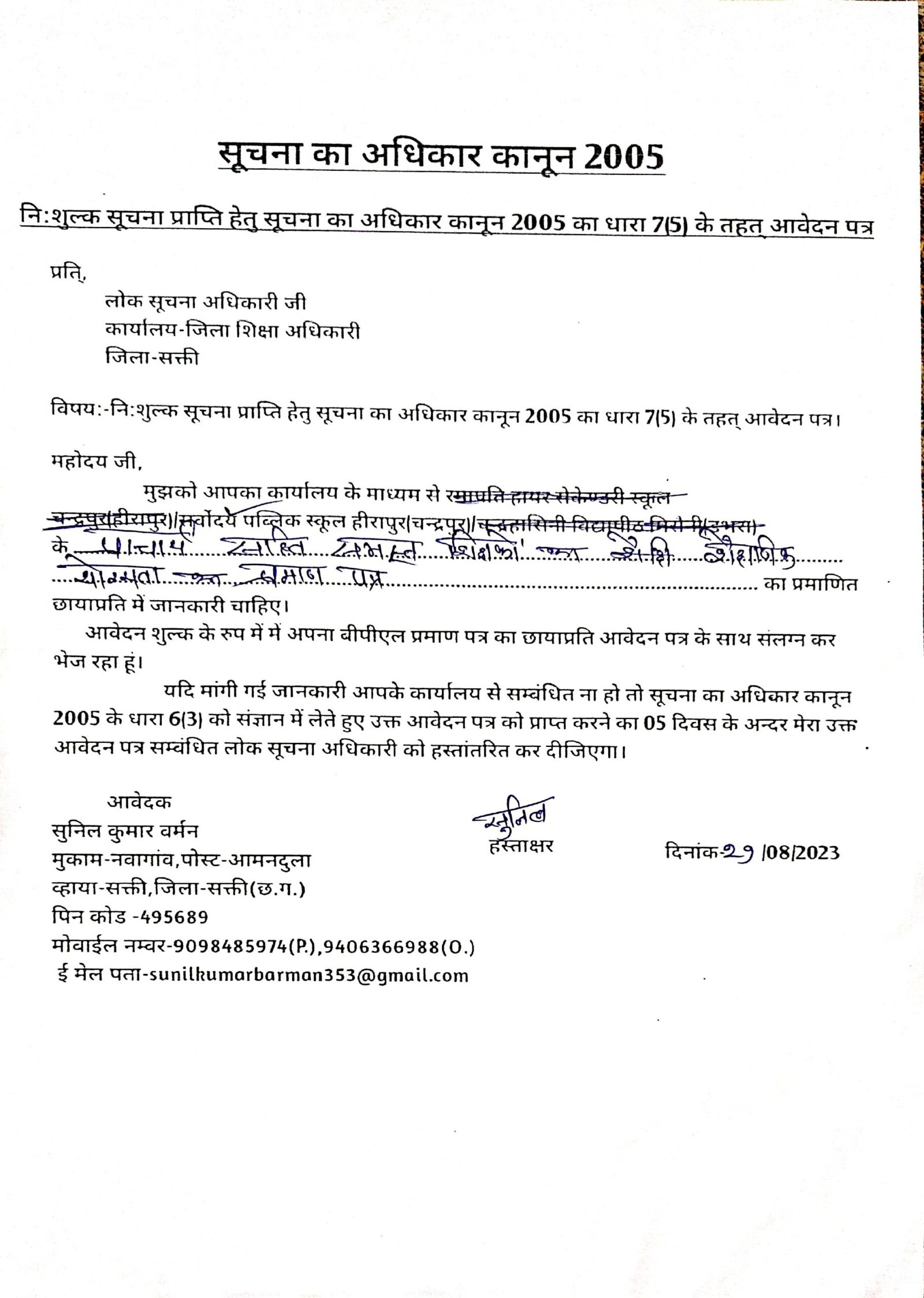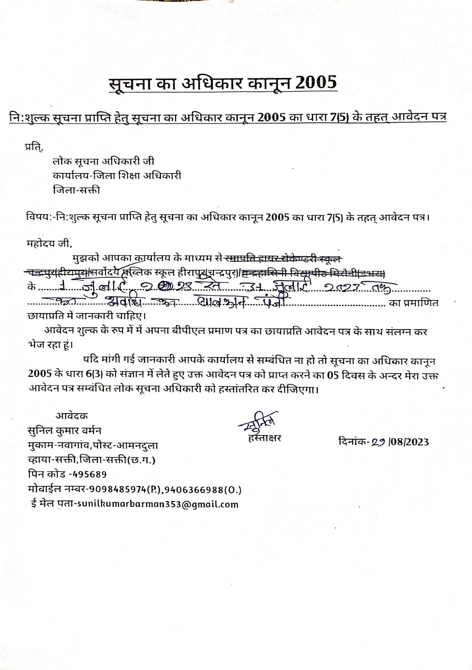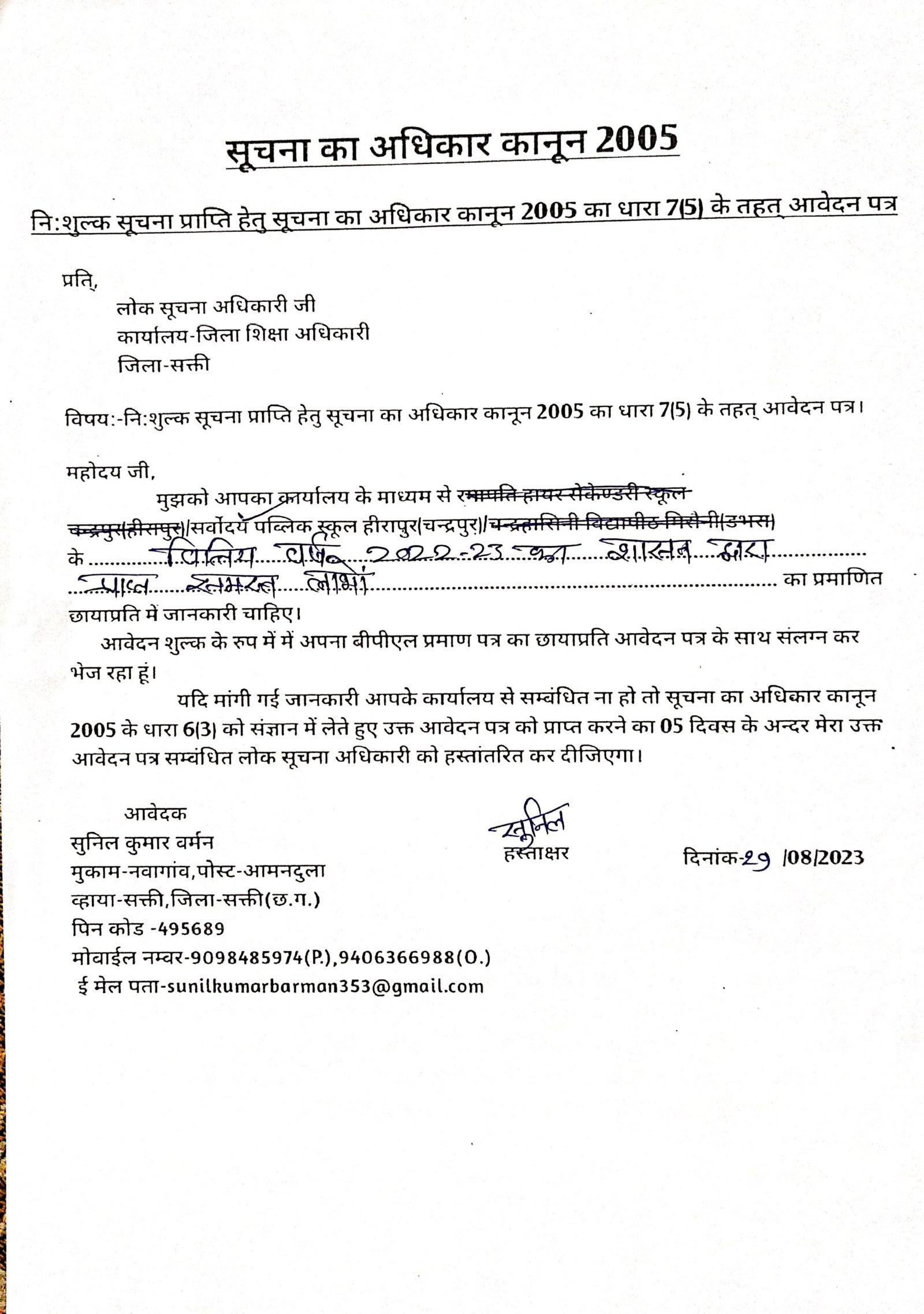 डभरा(एचकेपी 24 न्यूज)।सूचना का अधिकार 2005 के तहत् अलग-अलग विषय उल्लेखित 21 आवेदन पत्र प्रेषित कर मांगी गई सार्वजनिक करने योग्य सामान्य जानकारी को अशासकीय सर्वोदय पब्लिक स्कूल हीरापुर प्रबंधन ने स्वपित पोषित संस्था होने का हवाला देकर मांगी गई जानकारी को उपलब्ध करवाने अस्मर्थता व्यक्त करने पर आपत्ति जताते हुए हिन्देश एजुकेशन हेल्थ एण्ड वेलफेयर फाउण्डेशन(रजिस्टर्ड)के अध्यक्ष सुनिल कुमार बर्मन के द्वारा लिखित शिकायत किए जाने पर छत्तीसगढ़ राज्य सूचना आयोग ने सम्बंधित जन सूचना अधिकारी को 21 नोटिस पत्र जारी कर 23/07/2025 को जवाब एवं सम्बंधित रिकार्ड सहित विडियो कांफ्रेंसिंग एनआईसी जिला मुख्यालय सक्ती में उपस्थित होने के लिए आदेश जारी किया है।