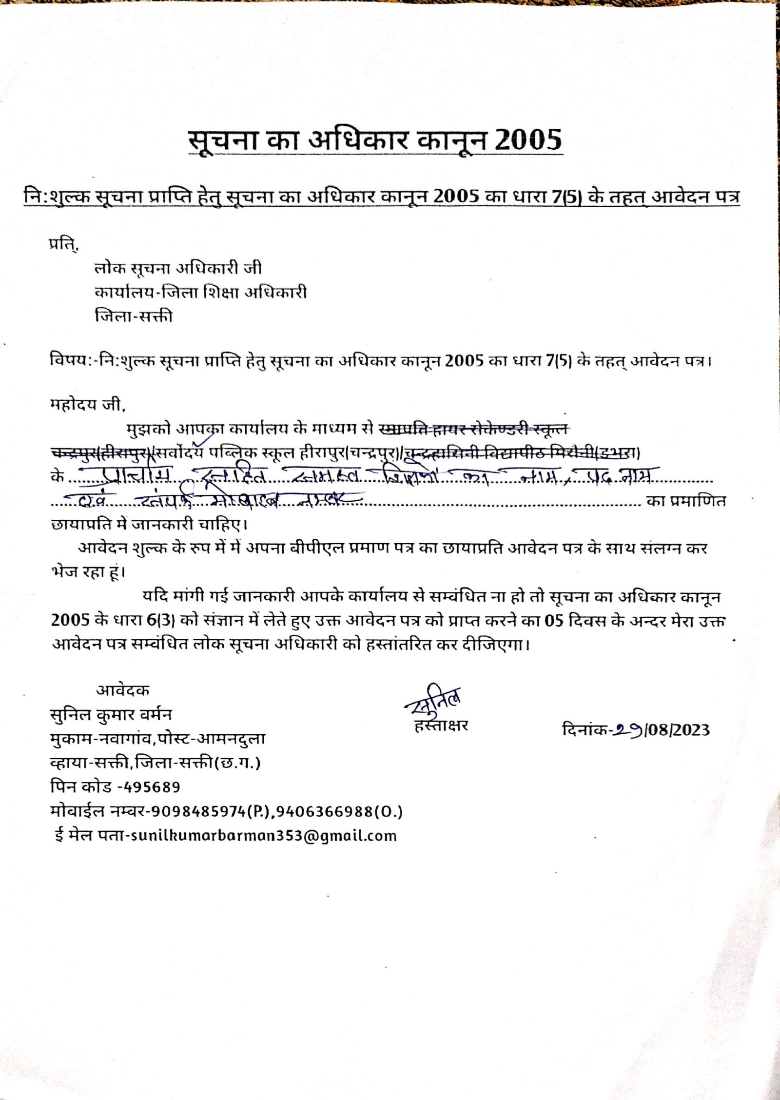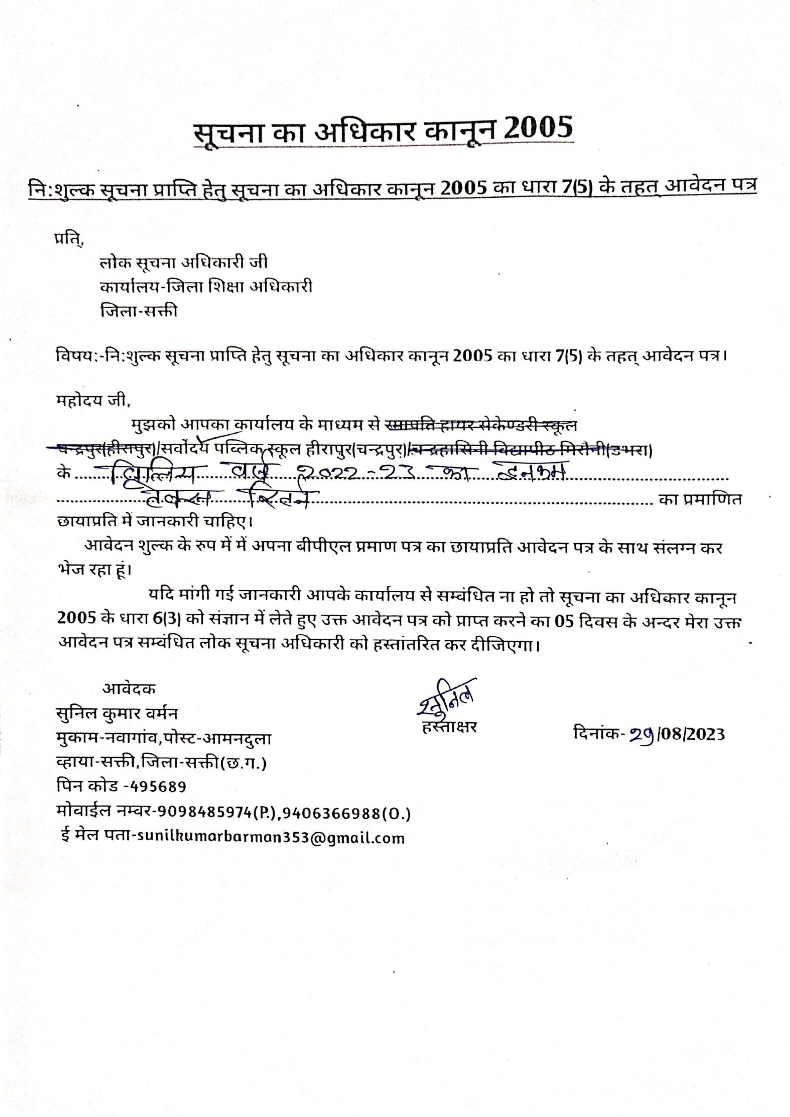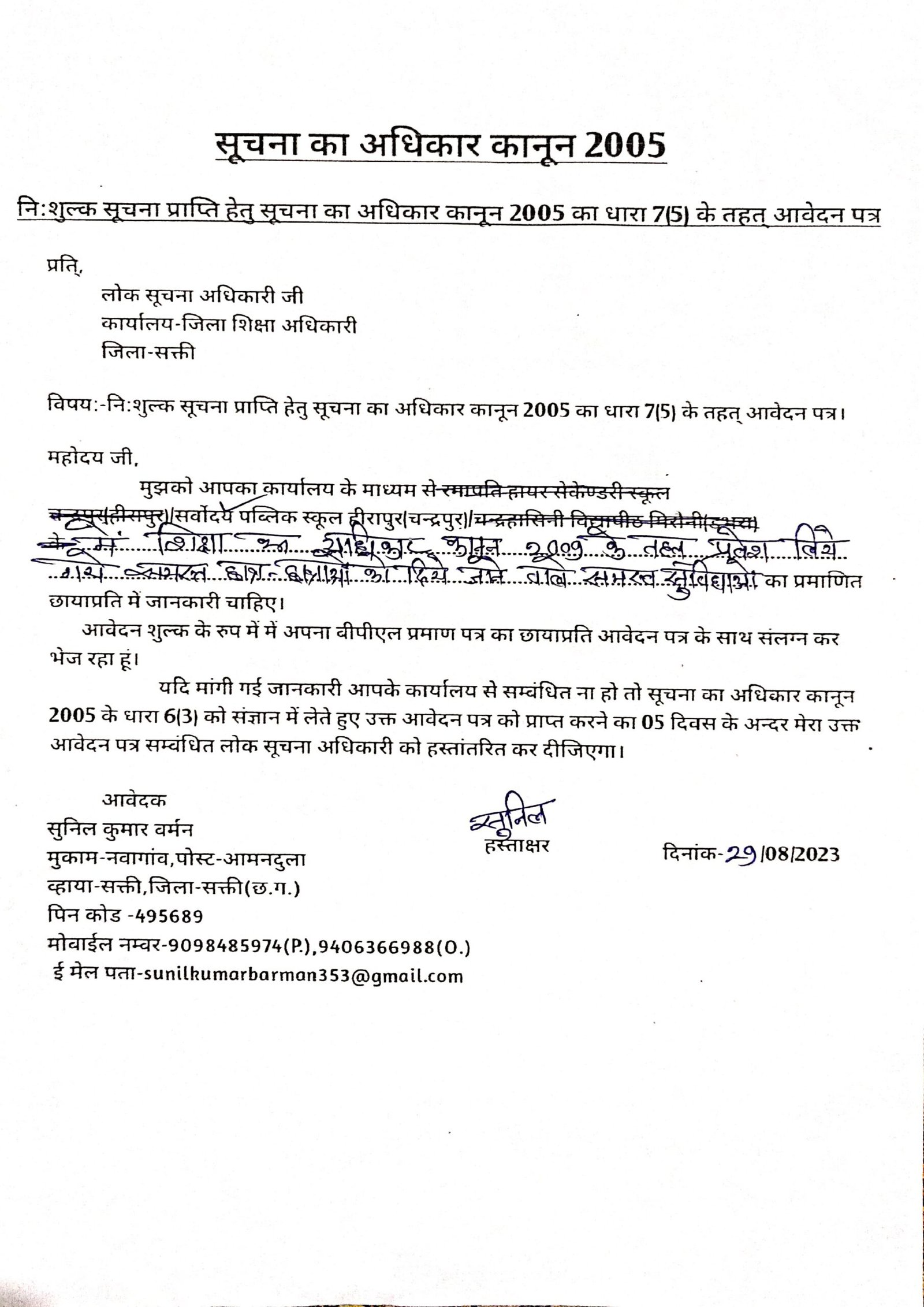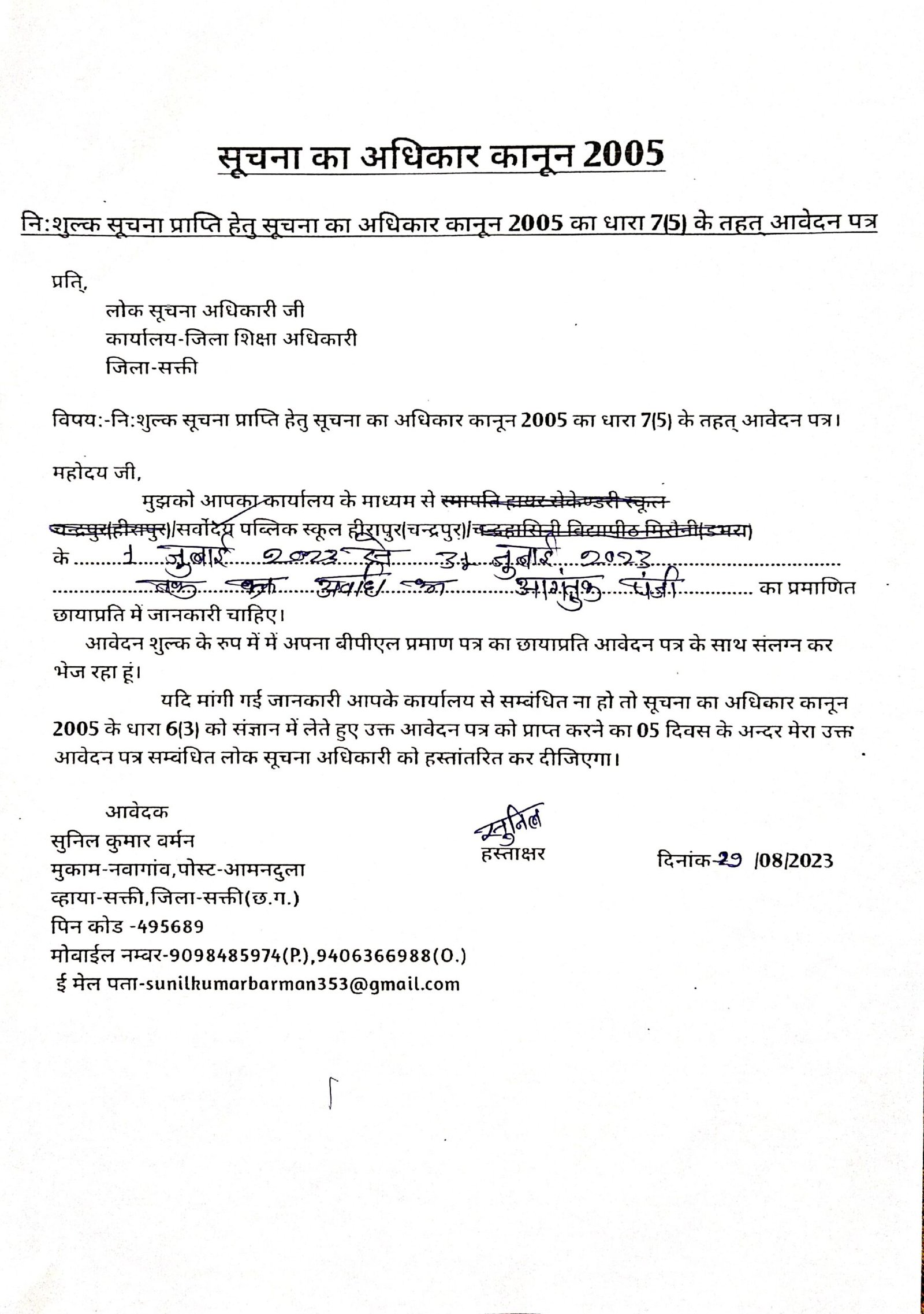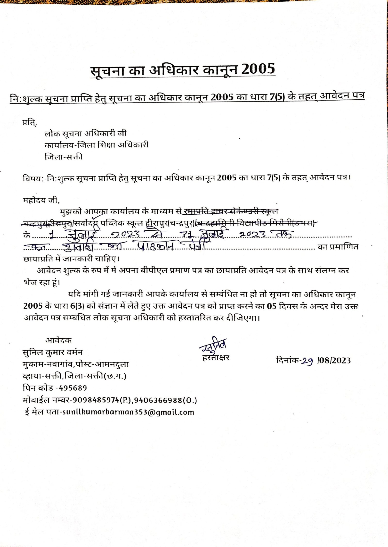 डभरा(एचकेपी 24 न्यूज)।सूचना का अधिकार 2005 के तहत् अलग-अलग विषय उल्लेखित 21 आवेदन पत्र प्रेषित कर मांगी गई सार्वजनिक करने योग्य सामान्य जानकारी को अशासकीय सर्वोदय पब्लिक स्कूल हीरापुर प्रबंधन ने स्वपित पोषित संस्था होने का हवाला देकर मांगी गई जानकारी को उपलब्ध करवाने अस्मर्थता व्यक्त करने पर आपत्ति जताते हुए हिन्देश एजुकेशन हेल्थ एण्ड वेलफेयर फाउण्डेशन(रजिस्टर्ड)के अध्यक्ष सुनिल कुमार बर्मन के द्वारा लिखित शिकायत किए जाने पर छत्तीसगढ़ राज्य सूचना आयोग ने सम्बंधित जन सूचना अधिकारी को 21 नोटिस पत्र जारी कर 23/07/2025 को जवाब एवं सम्बंधित रिकार्ड सहित विडियो कांफ्रेंसिंग एनआईसी जिला मुख्यालय सक्ती में उपस्थित होने के लिए आदेश जारी किया है।