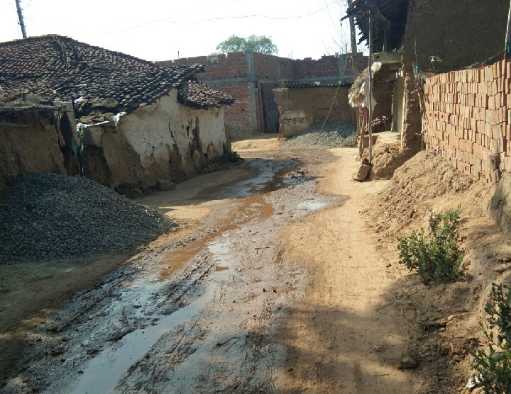 डभरा के कौडिया का गली में नाली का अभाव,सडक में बह रहा पानी